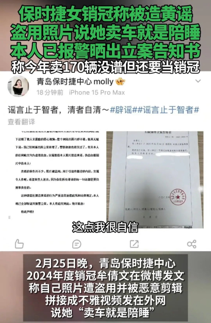 只是这盆脏水来的有些诡异,不早不晚,刚好在她晒出第二座170台保时捷奖杯的当口。
